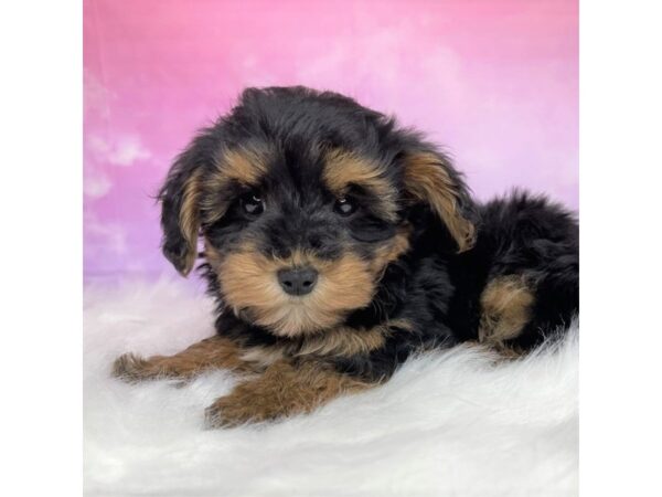 This breed was created in the United States by crossing a Yorkshire Terrier and a Poodle. It may be bred from either two purebred parents or two hybrid parents and retains its puppy size even when it grows into an adult. It was originally designed to be a companion dog that is suitable to live with allergy sufferers and to also create a small dog without the disease of both the Yorkshire and poodle.